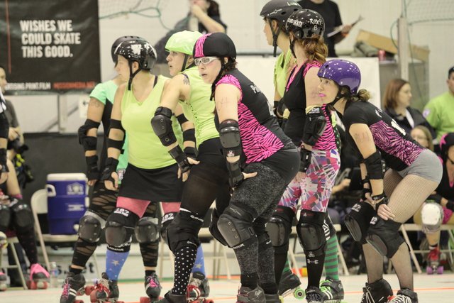 On the flat track, she is magnetically repelled by the lines (just try and pull a cut track on her). On the bank track, she is a leader and a powerhouse. A key Team Rogue pivot, Bam Bam used her experience to help Rogue control and pick apart teams they faced. (And she even got to use those quick feet to score some points)