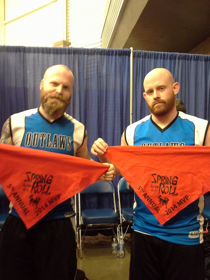 You’re not seeing double. That’s Haterade and TJ Binkley showing off their Spring Roll MVP bandannas.