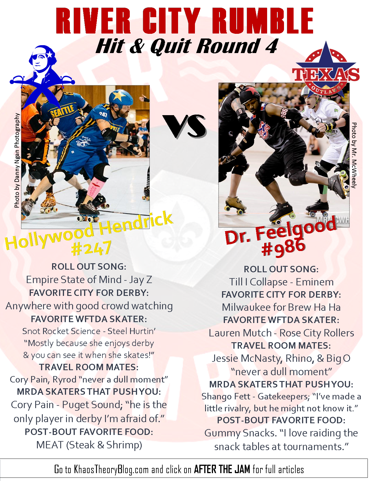 This is the last first round match-up of River City Rumble. It will happen at 3pm CST, and you can stream it live on WFTDA.tv on Saturday, October 17, 2015.